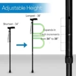 - قابلیت تنظیم ارتفاع: ارتفاع این عصا به راحتی قابل تنظیم است و میتوان آن را متناسب با قد و نیاز خود تنظیم کرد.