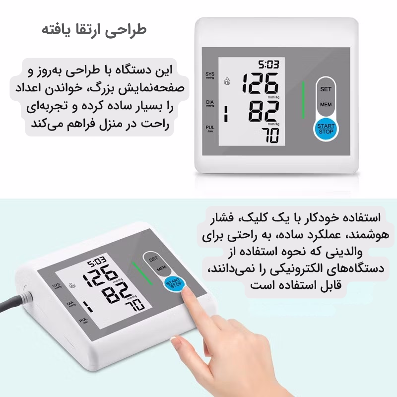 اگر به دنبال یک فشارسنج دقیق، قابل اعتماد و مناسب استفاده خانگی و پزشکی هستید، فشارسنج بازویی سخنگو دیجیتال استارمد مدل RJA-002 یکی از بهترین گزینه‌های موجود در بازار است. این دستگاه با استفاده از تکنولوژی نوسانی (Oscillometric) فشار خون سیستولیک، دیاستولیک و ضربان قلب را با دقت بالا اندازه‌گیری می‌کند و نتایج را به‌صورت صوتی اعلام می‌کند؛ بنابراین برای افراد مسن، کم‌سواد یا کسانی که مشکل بینایی دارند بسیار مناسب است.