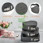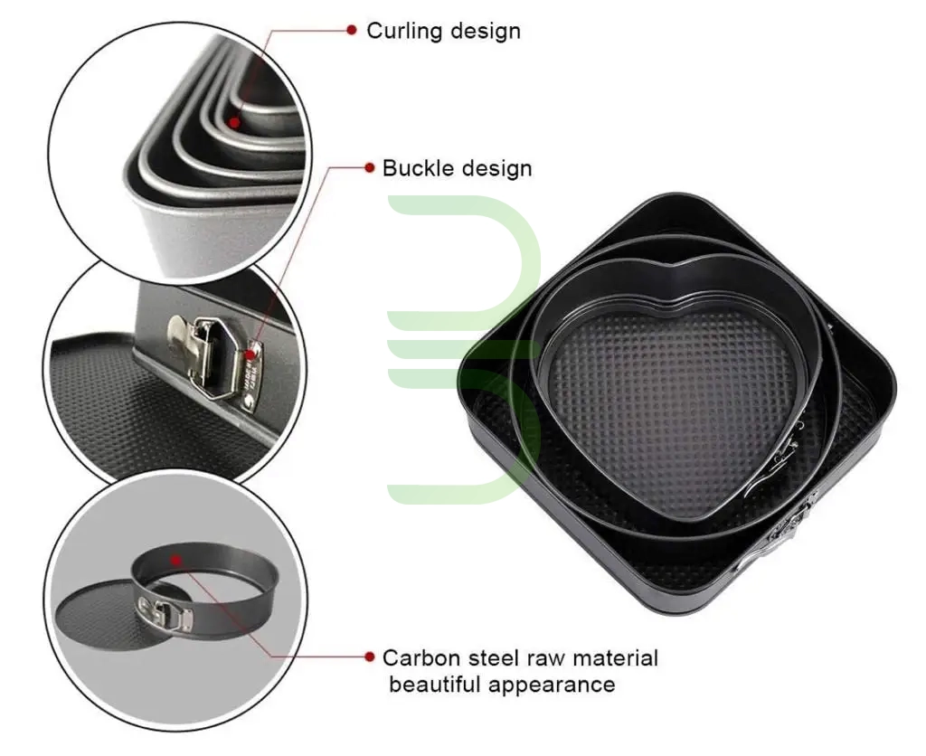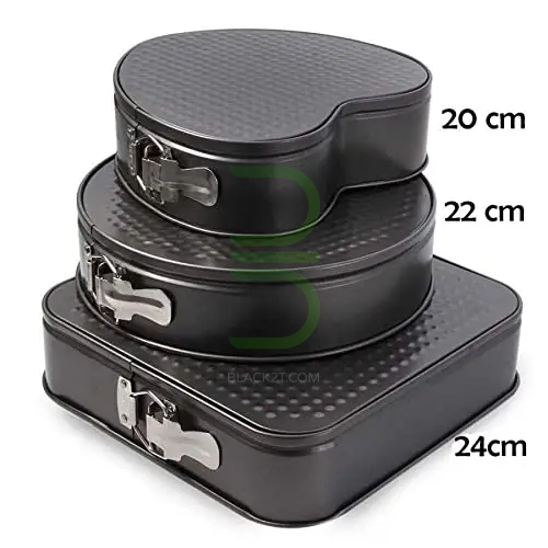 ست ۳ عددی در اندازههای مختلف: شامل قالبهای ۱۸، ۲۰ و ۲۲ سانتیمتر که برای انواع کیک، تارت، چیزکیک و شیرینی مناسب هستند.