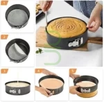 ضد نشت و جداشدنی: دارای سگک فلزی محکم برای جلوگیری از نشت مایه کیک و کف جداشونده برای بیرون آوردن راحت کیک بدون آسیب.
