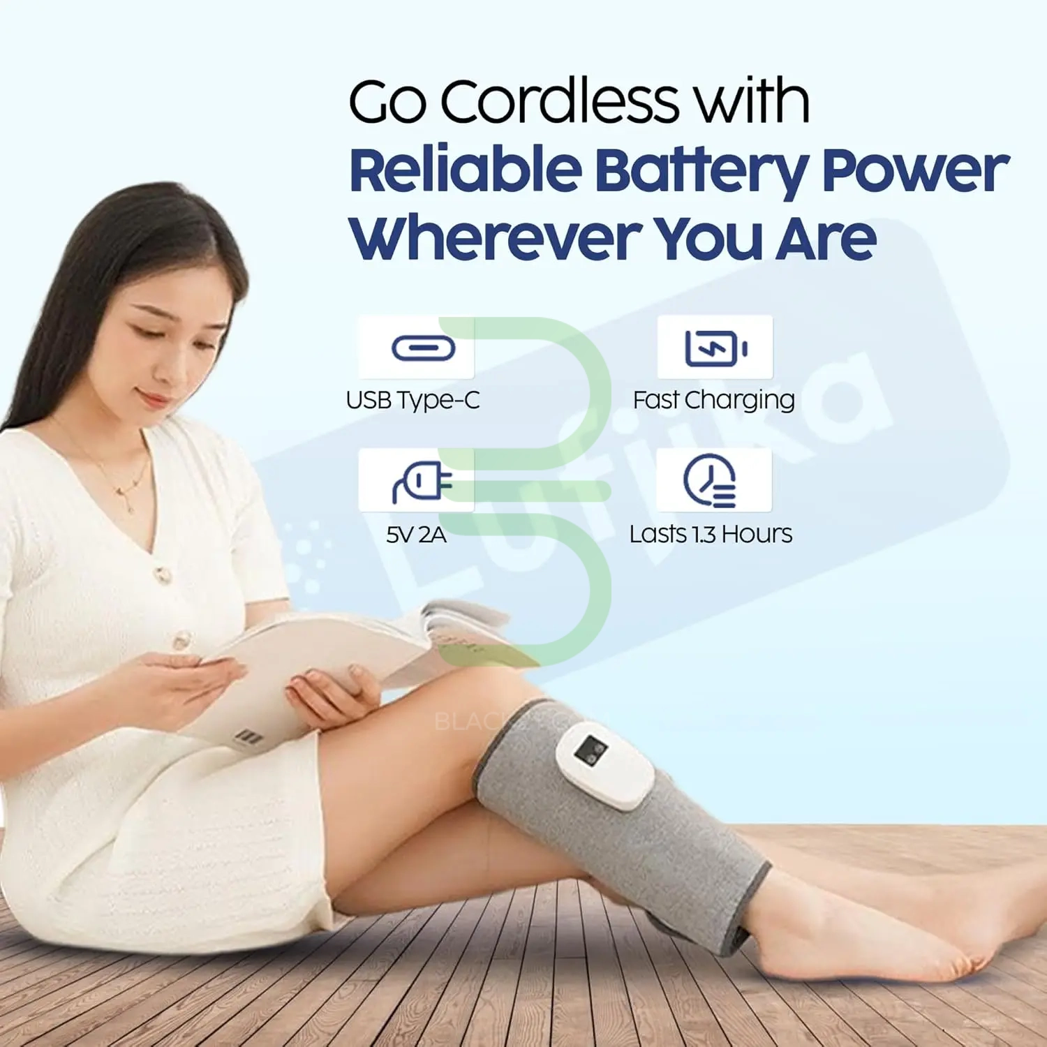 این ماساژور دارای پارچه ای از جنس الیاف با کیفیت بوده که به پوست بدن حساسیتی ایجاد نمی کند و دارای چسب بوده که به دور پا چفت می شود.