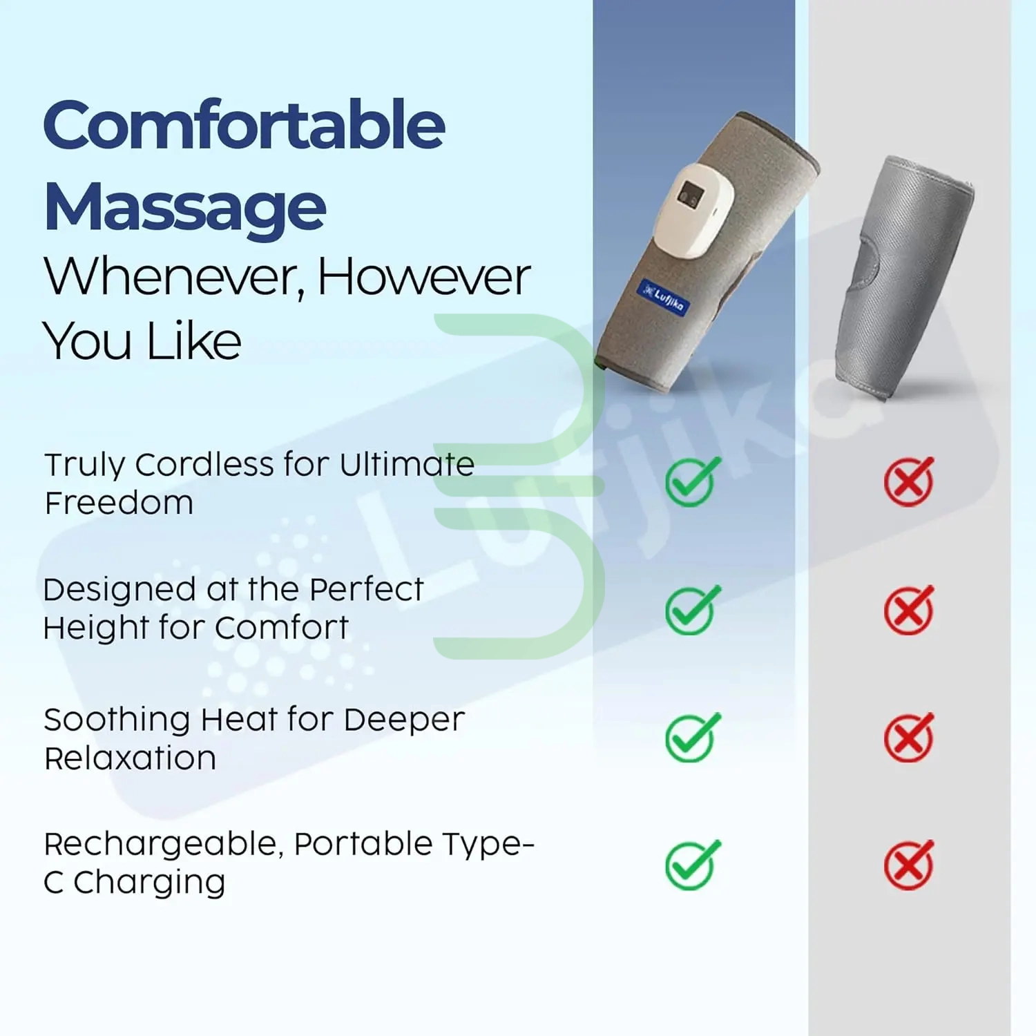 پنل کنترل این ماساژور به ماساژور وصل است و شما به راحتی می توانید حتی در هنگام خواب، استراحت، نشستن، ایستادن و یا در هنگام سفر از این ماساژور استفاده کنید.