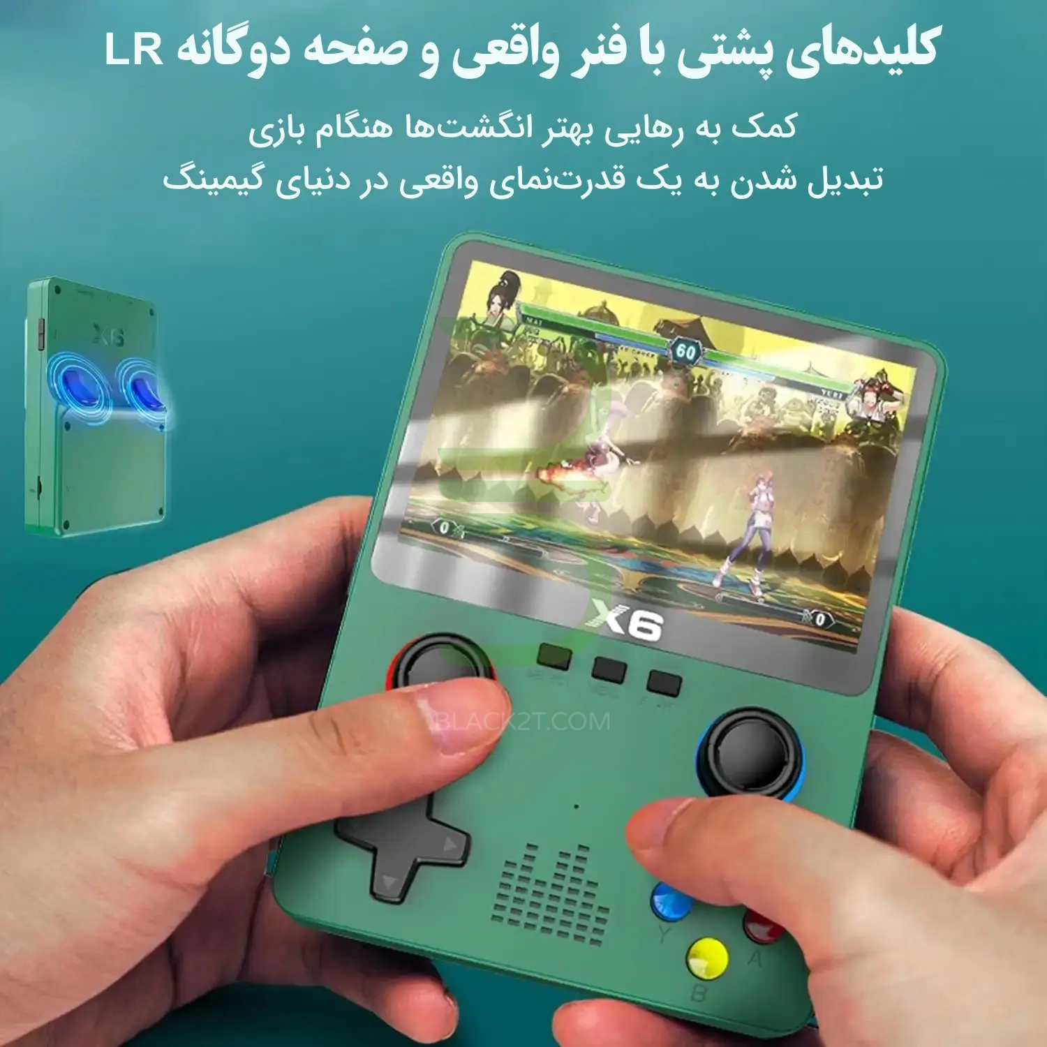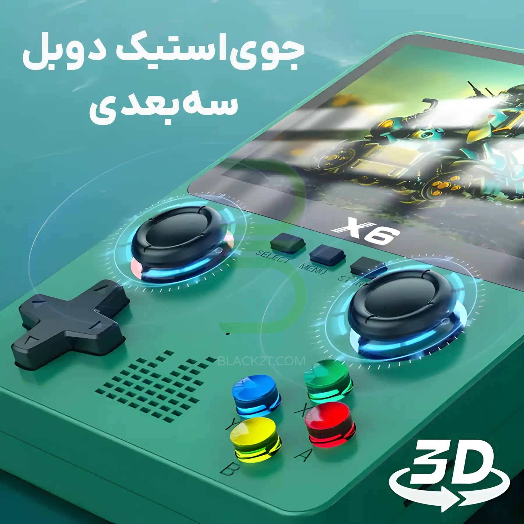 کنسول X6 یک دستگاه جمعوجور، سبک و قابلحمل است که بهطور ویژه برای اجرای بازیهای کلاسیک طراحی شده. این دستگاه نهتنها از گرافیک مناسبی بهره میبرد بلکه با داشتن شبیهسازهای مختلف، مجموعهای از بازیهای محبوب چند نسل را در خود جای داده است.